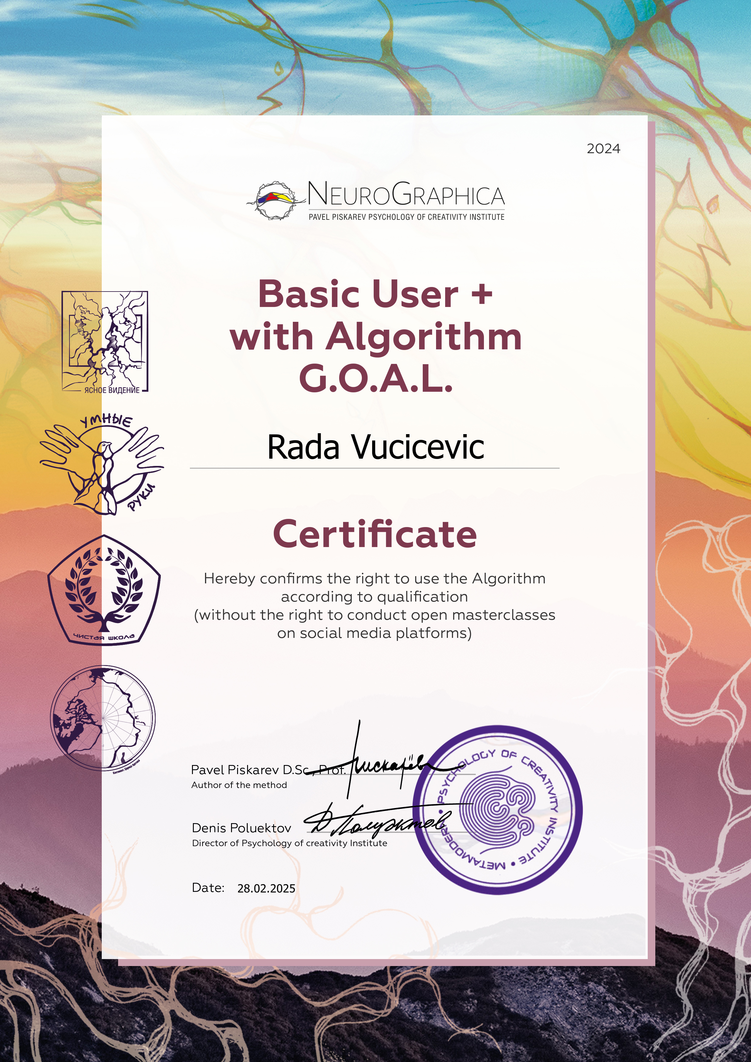 U svom dugogodišnjem radu sa klijentima primenjujem različite metode, kombinujući ih u holistički pristup koji pomaže ljudima da se oslobode emocionalnih blokada, otkriju svoje potencijale i povežu sa sobom na dubljem nivou. Moj rad je nežan, ali dubok, prilagođen individualnom ritmu svakog čoveka, u prostoru poverenja i iskrenosti.
